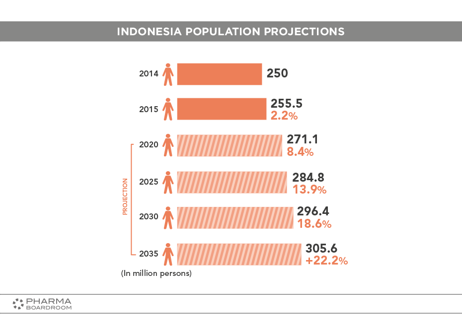 Indonesia's population is projected to grow to 305.6 million by 2035.