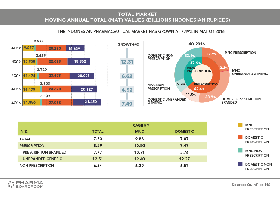 The Indonesian pharmaceutical market from 2012 to 2016.