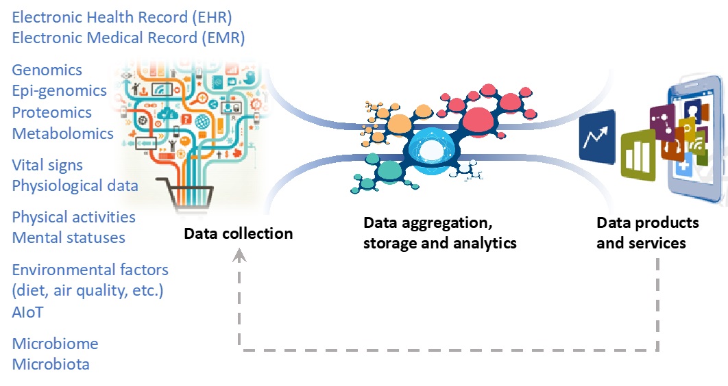 If all of the data security, and the data connectivity and distributions issues can be properly solved, we can then aggregate electronic health records (EHR), electronic medical records (EMR) with genomics data, with IoT measurements on vital signs, physical activities or mental statuses, and even with other environmental factors or microbiota – the interaction of human beings with micro-organisms. Such “big data” can then be subjected to innovative analyses or AI to create solutions. Nevertheless, data collection and aggregation remain the most important aspect. This has already been achieved to varying degrees in other areas, for example in FinTech. Perhaps we can utilize their experience to advance solutions in healthcare.