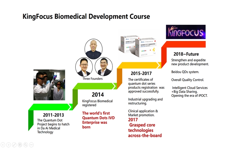 I am extremely proud to introduce KingFocus Biomedical as the first company in the world to use quantum dot technology in the field of in-vitro diagnostics and specifically focused on Point-Of-Care-Testing (POCT). This is the most valuable aspect of our operations – that we were able to commercialize this cutting-edge technology of quantum dots in the diagnostics field. We are a vertically integrated company with R&D, manufacturing and commercial sales.